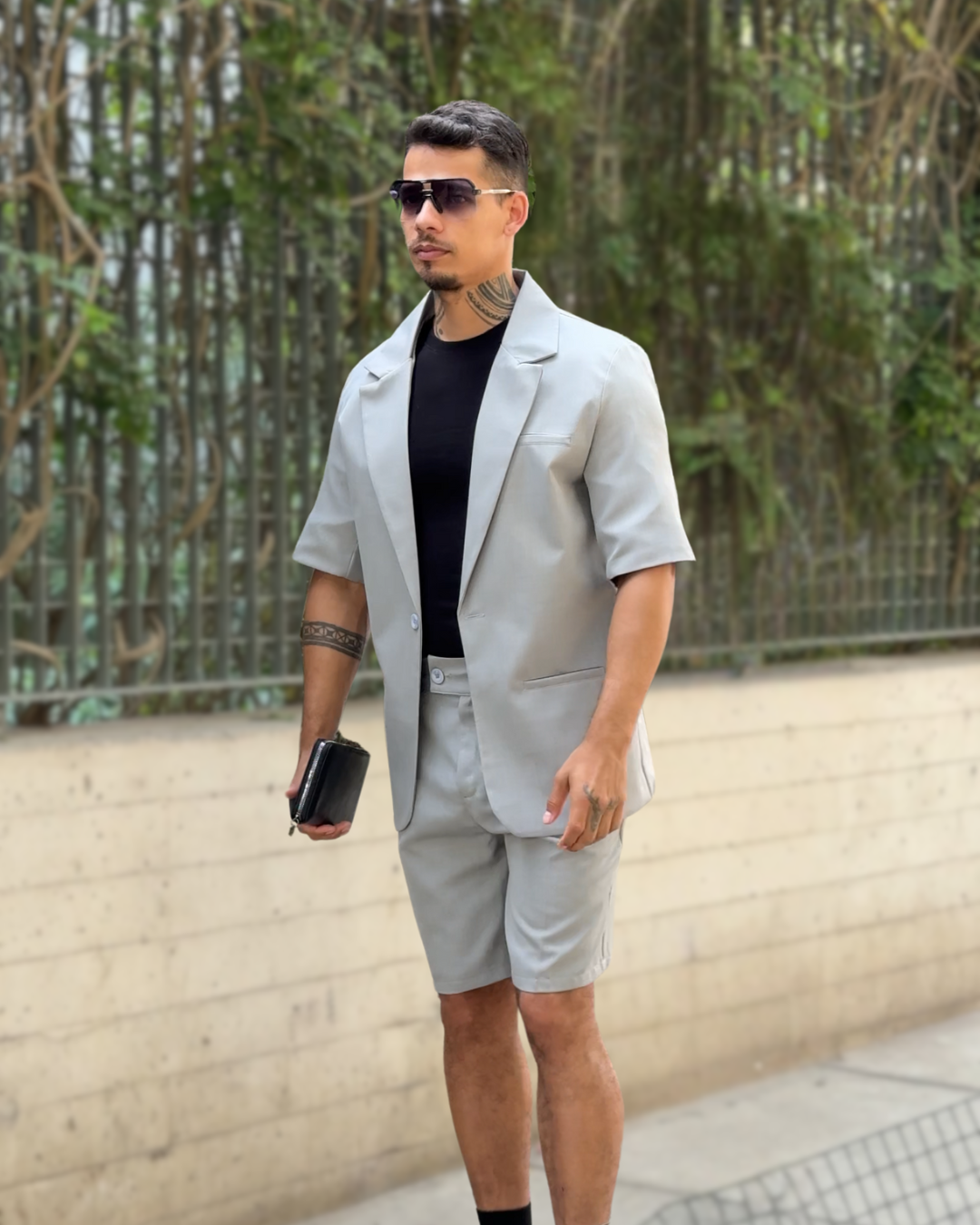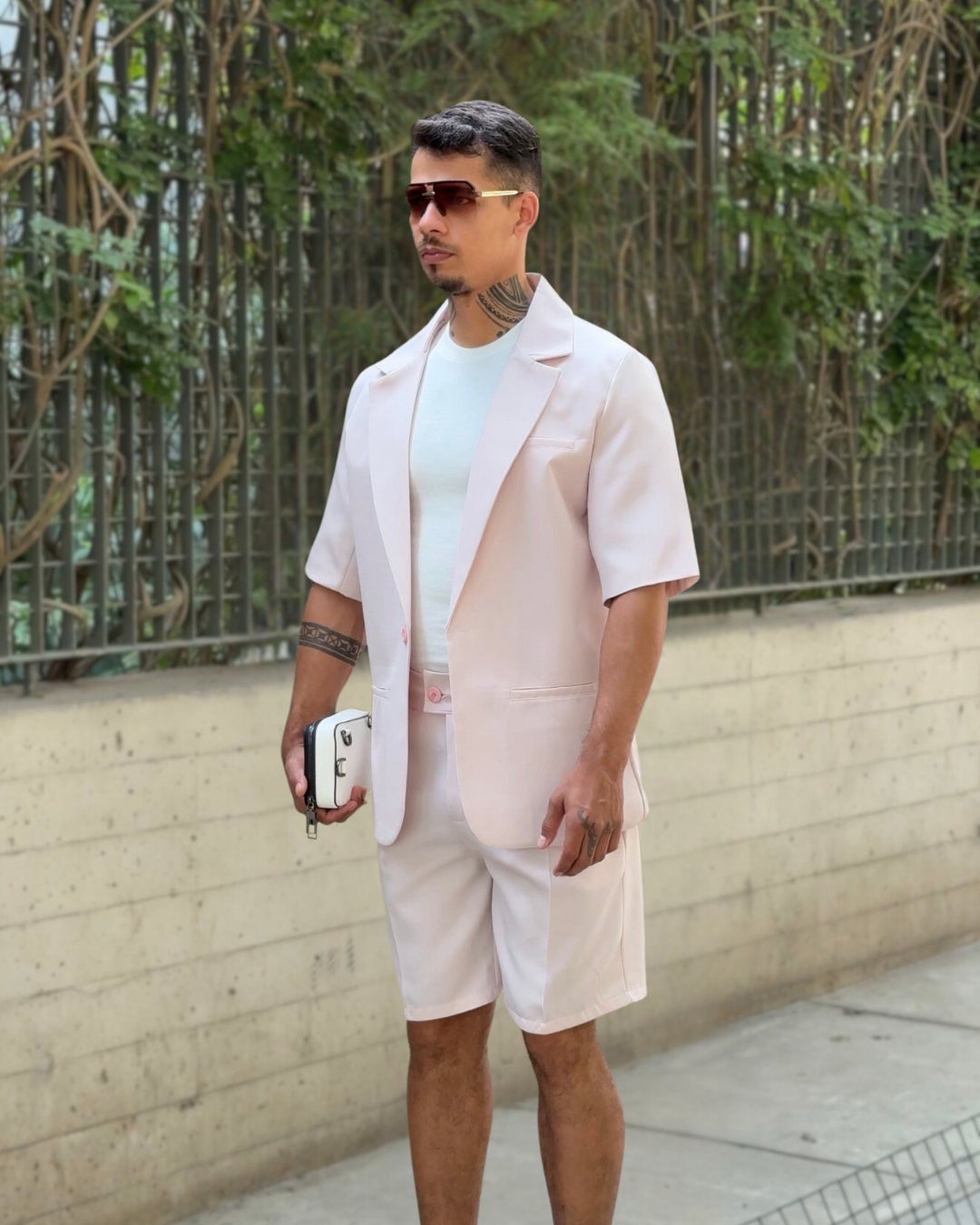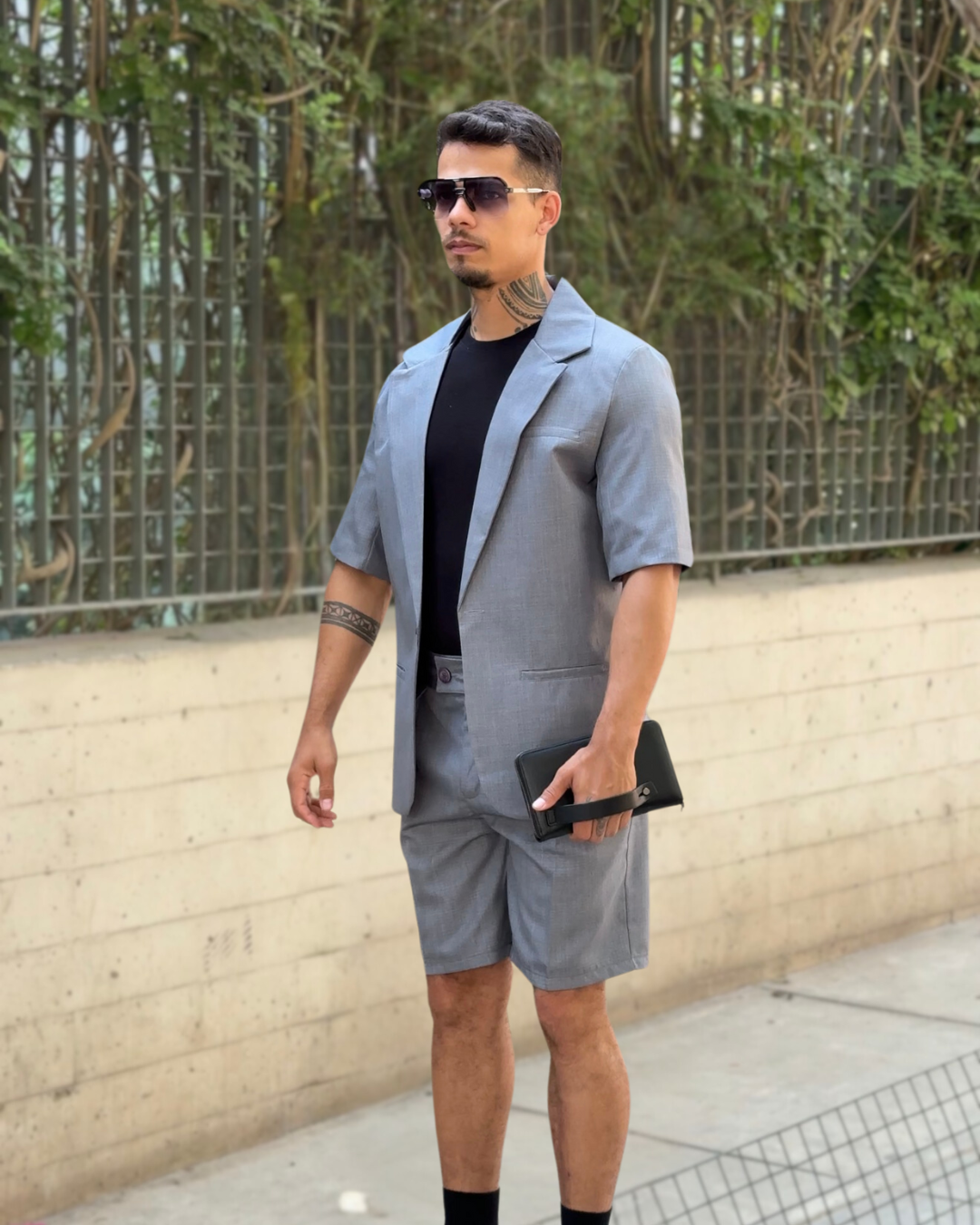 Set elegante, sofisticado para un estilo fresco y único, hecho en tela de lino para mayor comodidad con un blazer y short, luce tu verano con lo mejor en la moda masculina